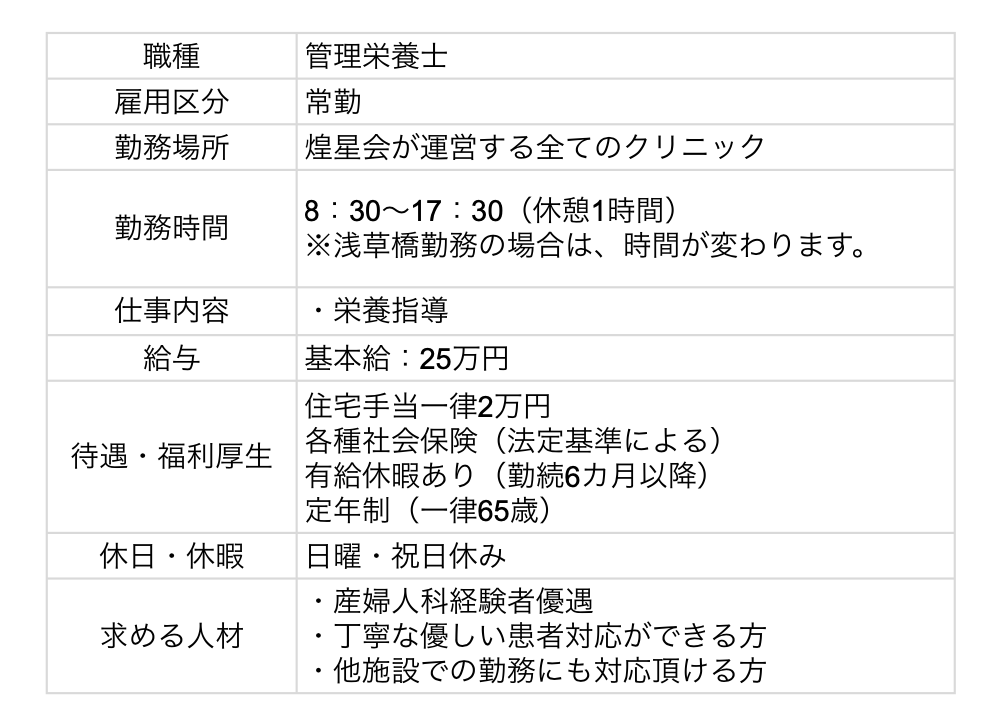 この度、事業拡大のため、<栄養士>を募集いたします。